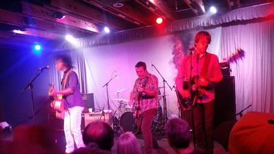 Photos in clockwise order: The finished painting; tickets for a recent PHX show; Mike and Julie hanging with guitaristo Ken Bethea pre-show; the Old97s doing what they do (Ken center stage); in progress pic.